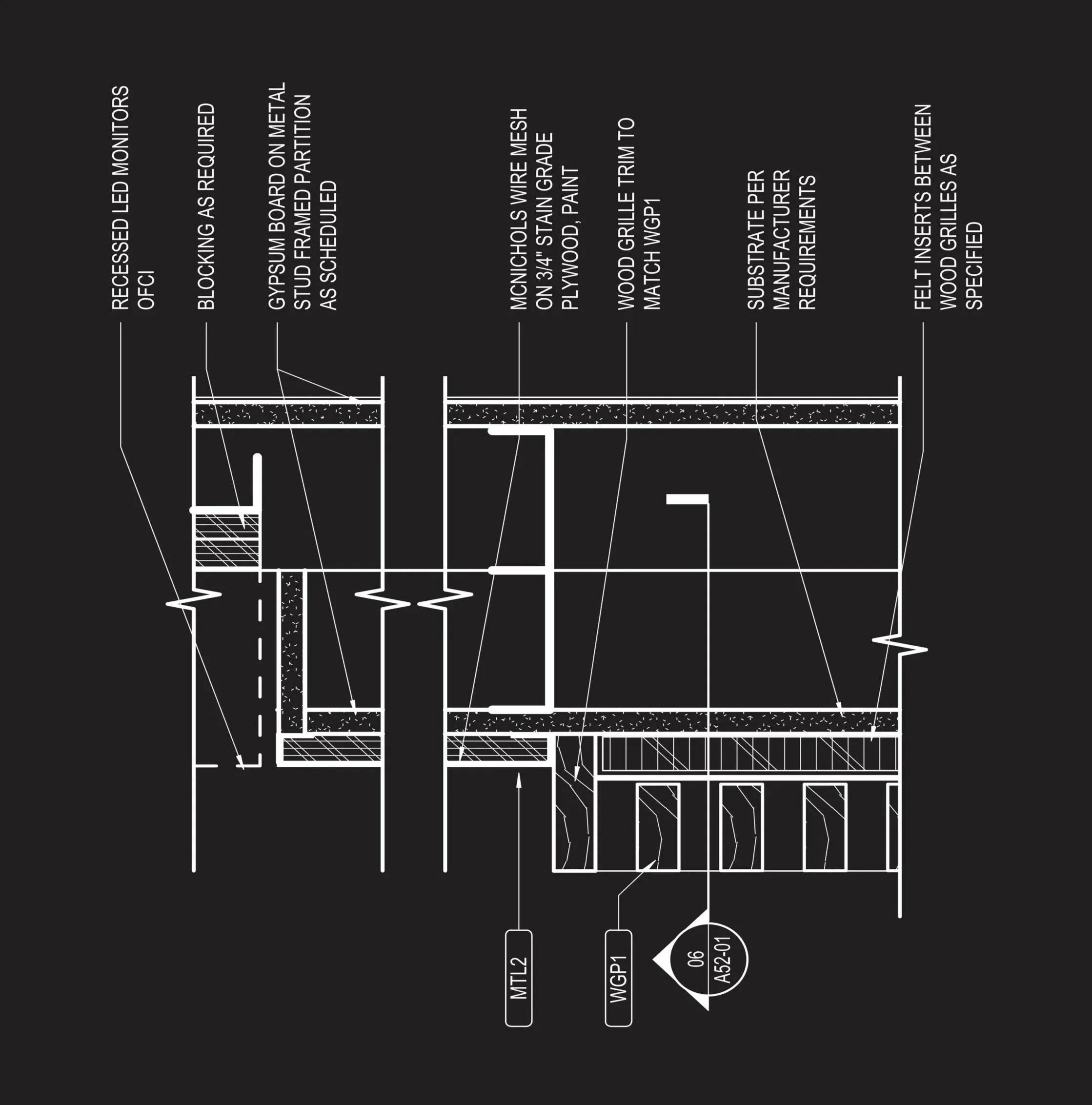 Plan details at material transitions along circulation spine.