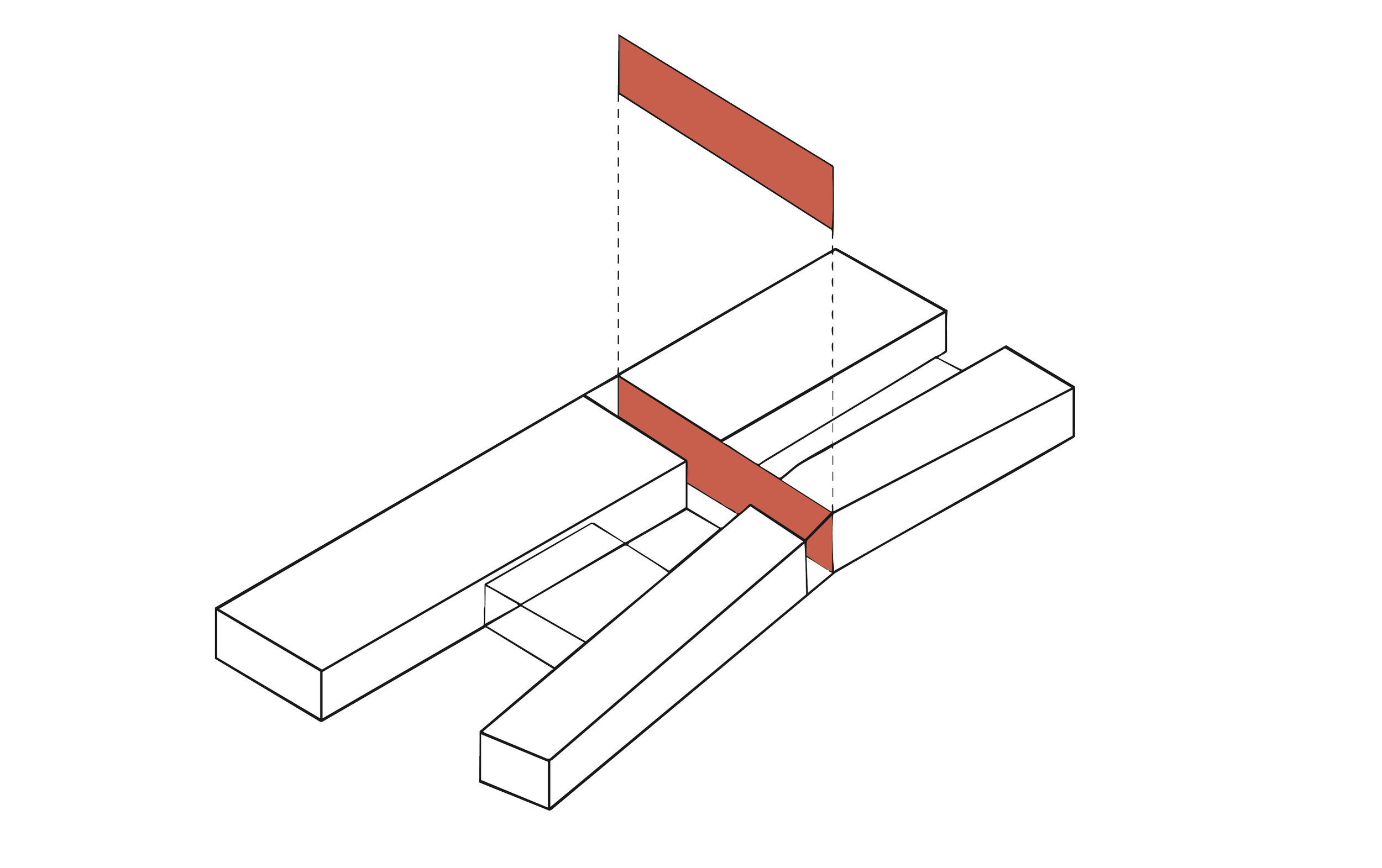 Exterior masonry at level 01 and panel coursing at level 02 extend inside the building. This makes the gathering spaces an extension of the central courtyard, light-filled and belonging to the neighborhood.