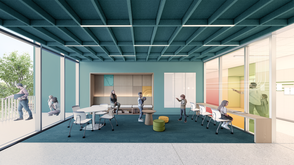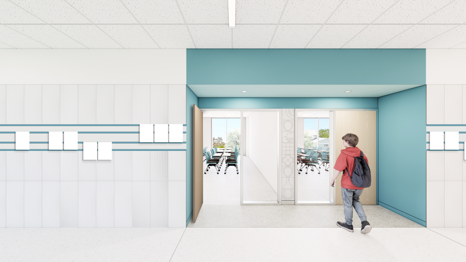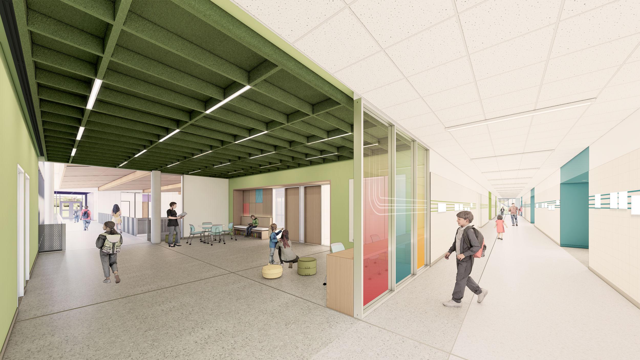 View at Collaboration zone adjacent to classroom corridor.