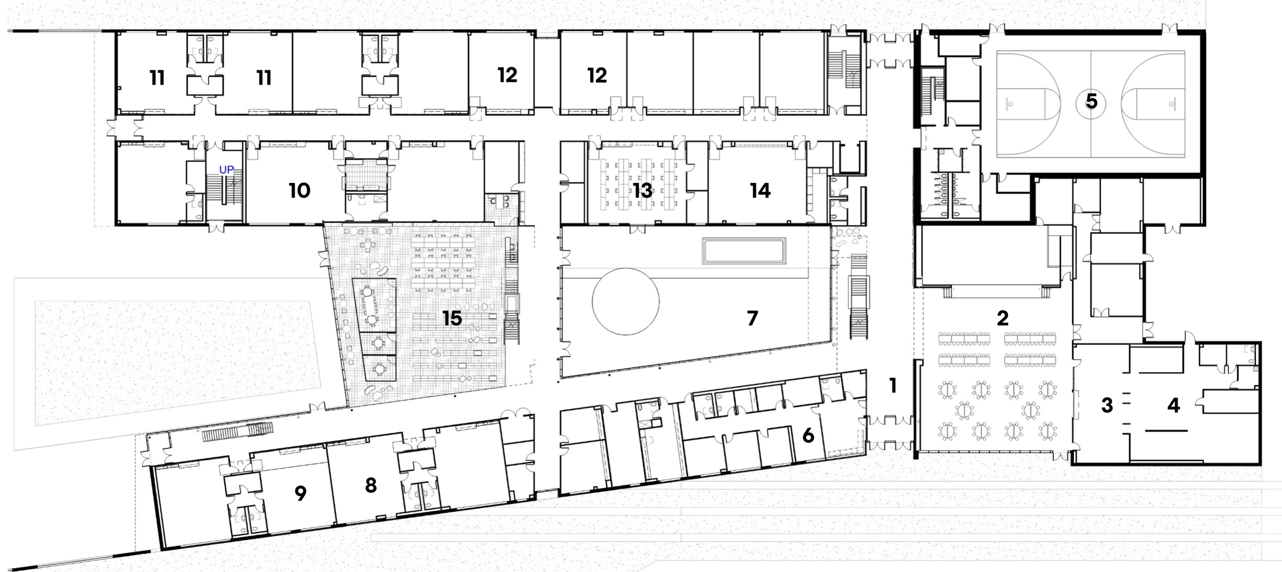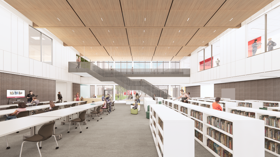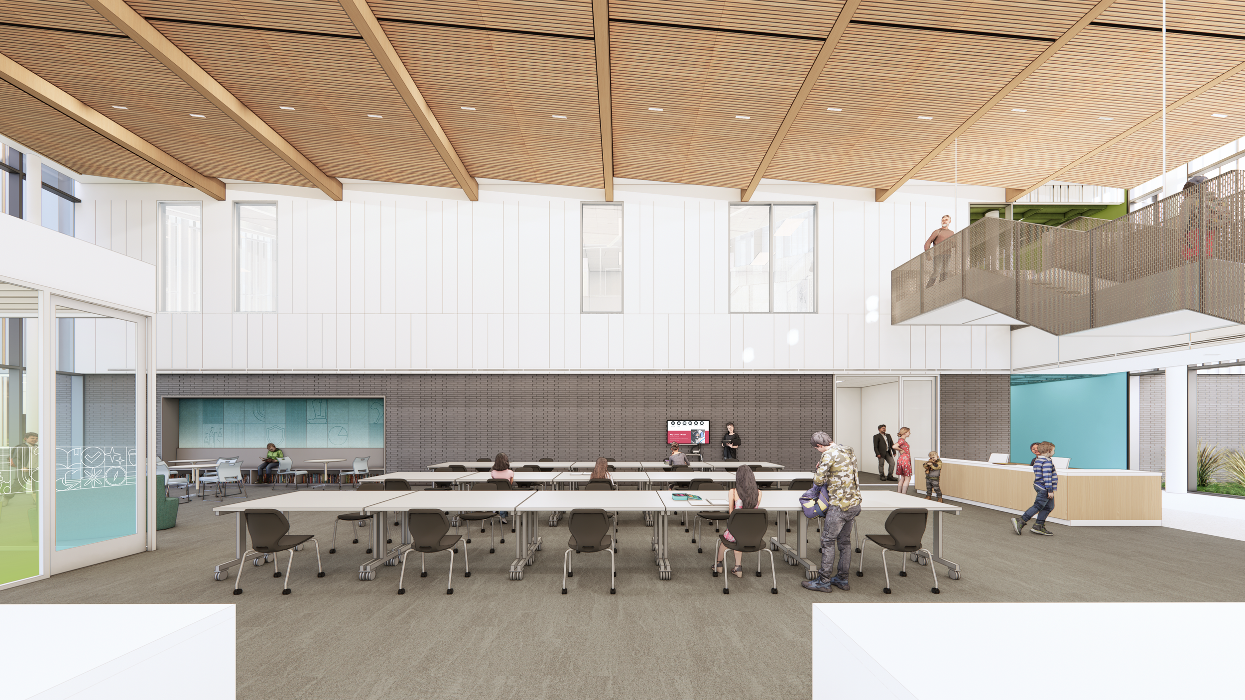 The main circulation thoroughfare delineates between academic environment and more opaque program.
